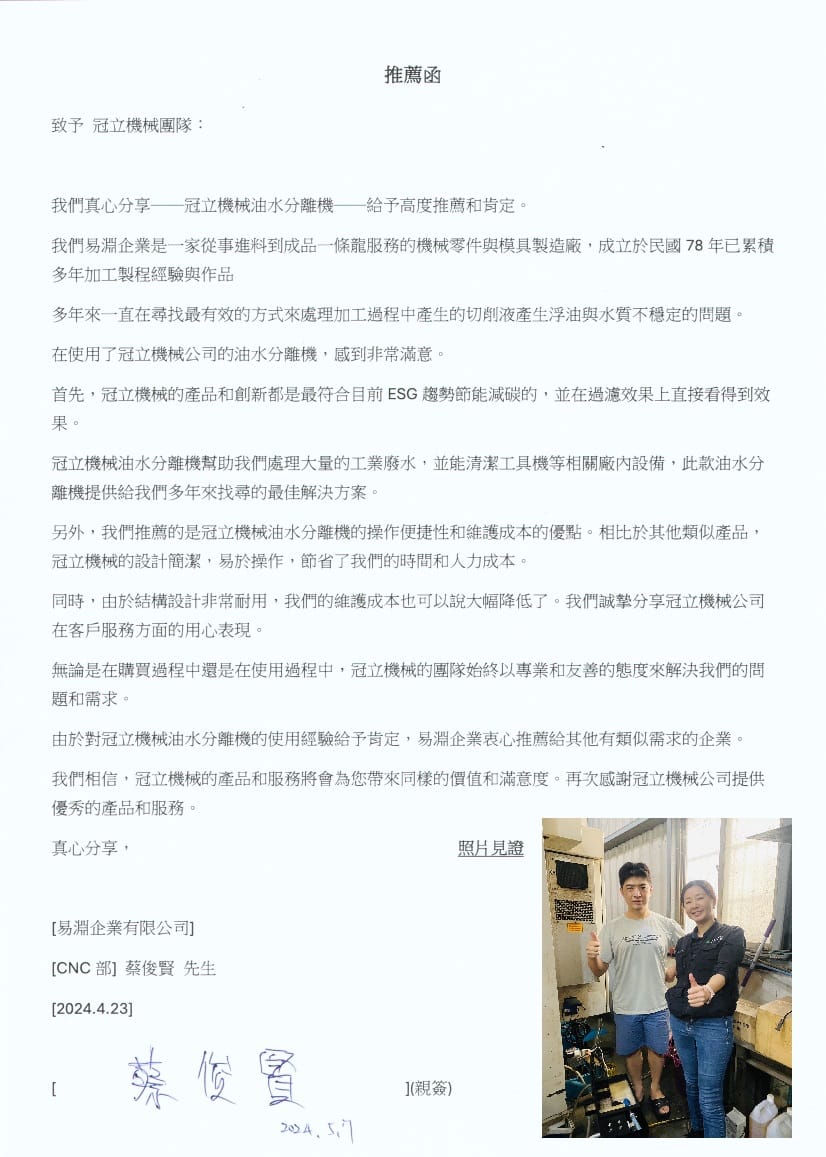 #易淵企業有限公司 #冠立機械 #油水分離機