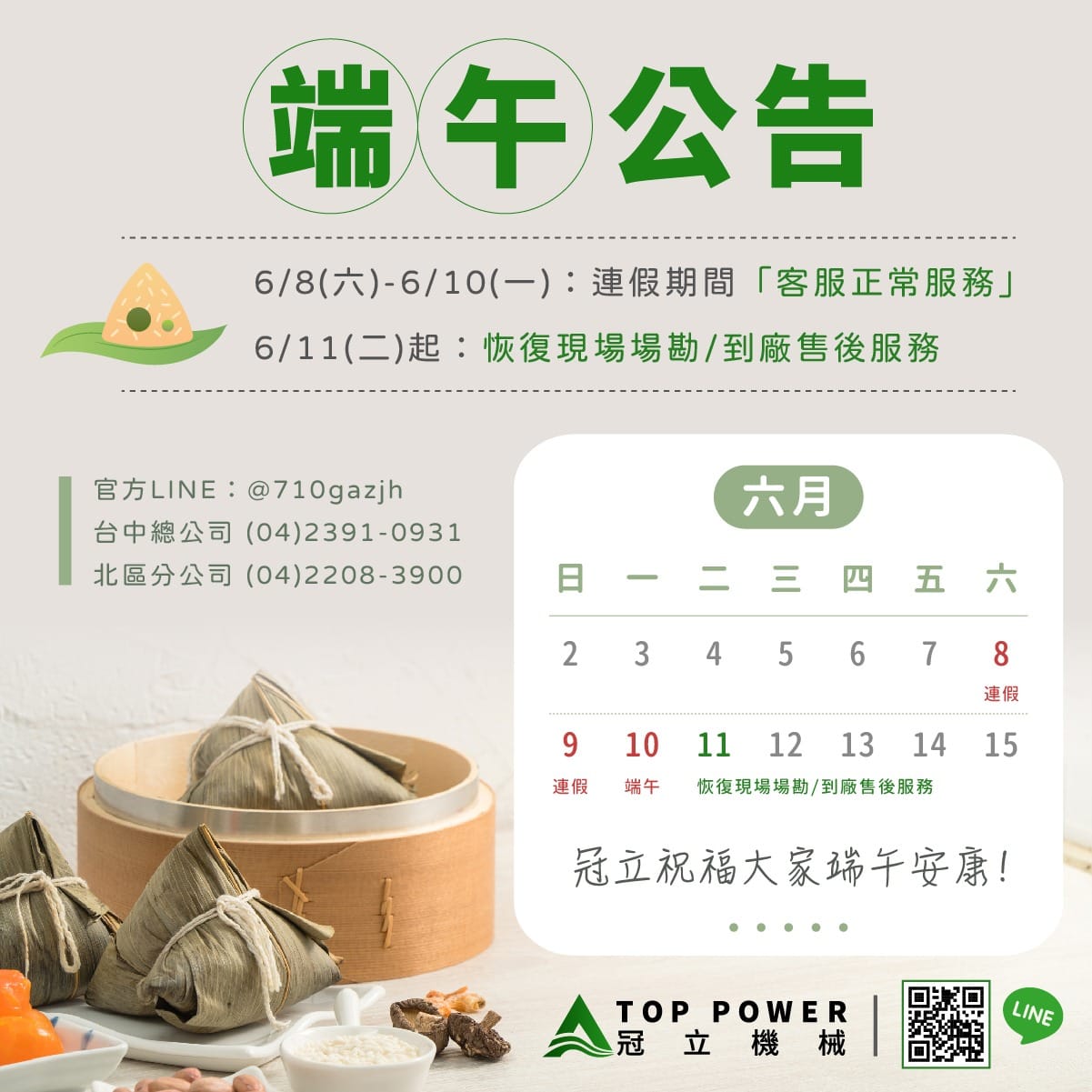 ✦端午佳節到!冠立連假客服持續不打烊✦